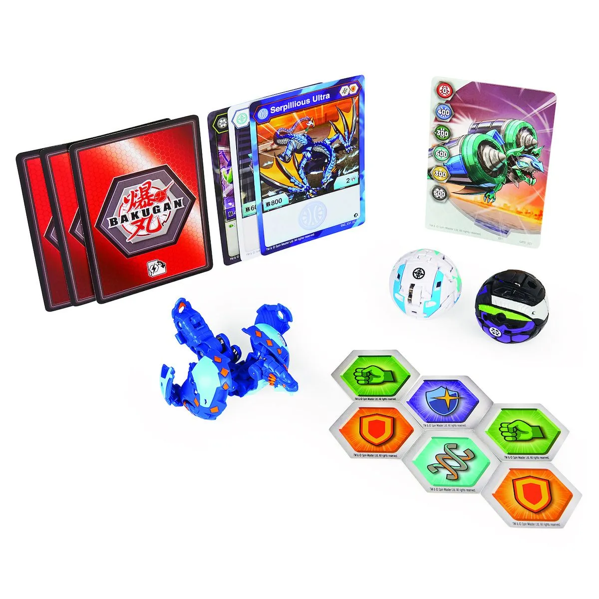Bakugan Spin Master Geogan Rising: Serpillious Ultra, Auratoa And Ninjiton Starter Pack Το Σετ περιλαμβάνει όλα όσα χρειάζεσαι! Κάθε συσκευασία περιέχει: 1 Bakugan Ultra 2 Bakugan 6 κάρτες BakuCore 3 κάρτες ικανοτήτων 3 κάρτες χαρακτήρα 1 κάρτα Πύλης