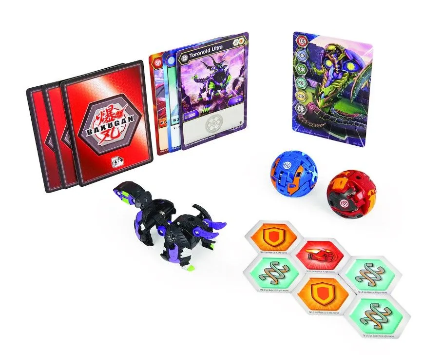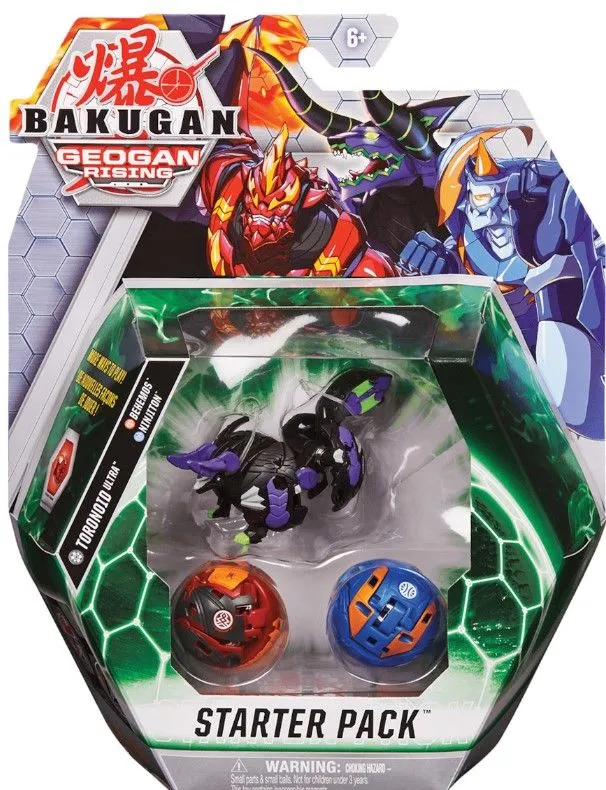 Bakugan Spin Master Geogan Rising: Toronoid Ultra, Behemos and Ninjiton Starter Pack Το Σετ περιλαμβάνει όλα όσα χρειάζεσαι! Κάθε συσκευασία περιέχει: 1 Bakugan Ultra 2 Bakugan 6 κάρτες BakuCore 3 κάρτες ικανοτήτων 3 κάρτες χαρακτήρα 1 κάρτα Πύλης 3-2-1: ΚΟΝΤΡΑ BAKUGAN!