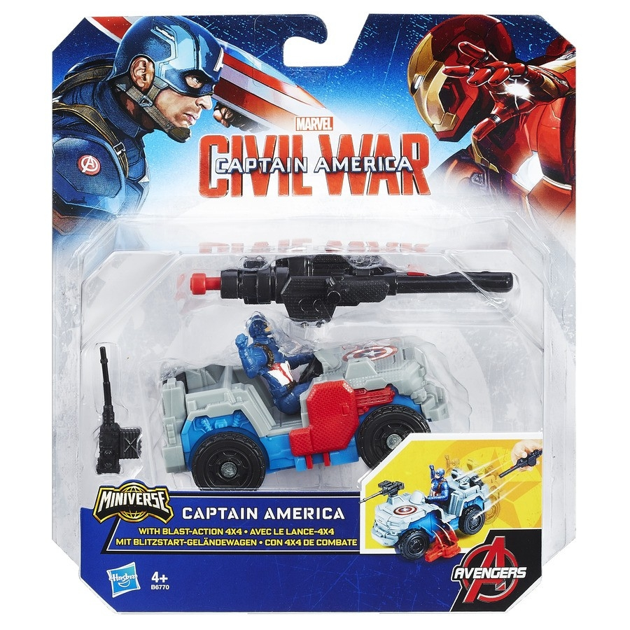 Captain America όχημα με φιγούρα μικρή απο την ταινία. Μήκος οχήματος: 10 εκατοστά. Με ειδικό μηχανισμό που το ωθεί. Διατίθεται σε 2 σχέδια: •Captain America και •Winter Soldier