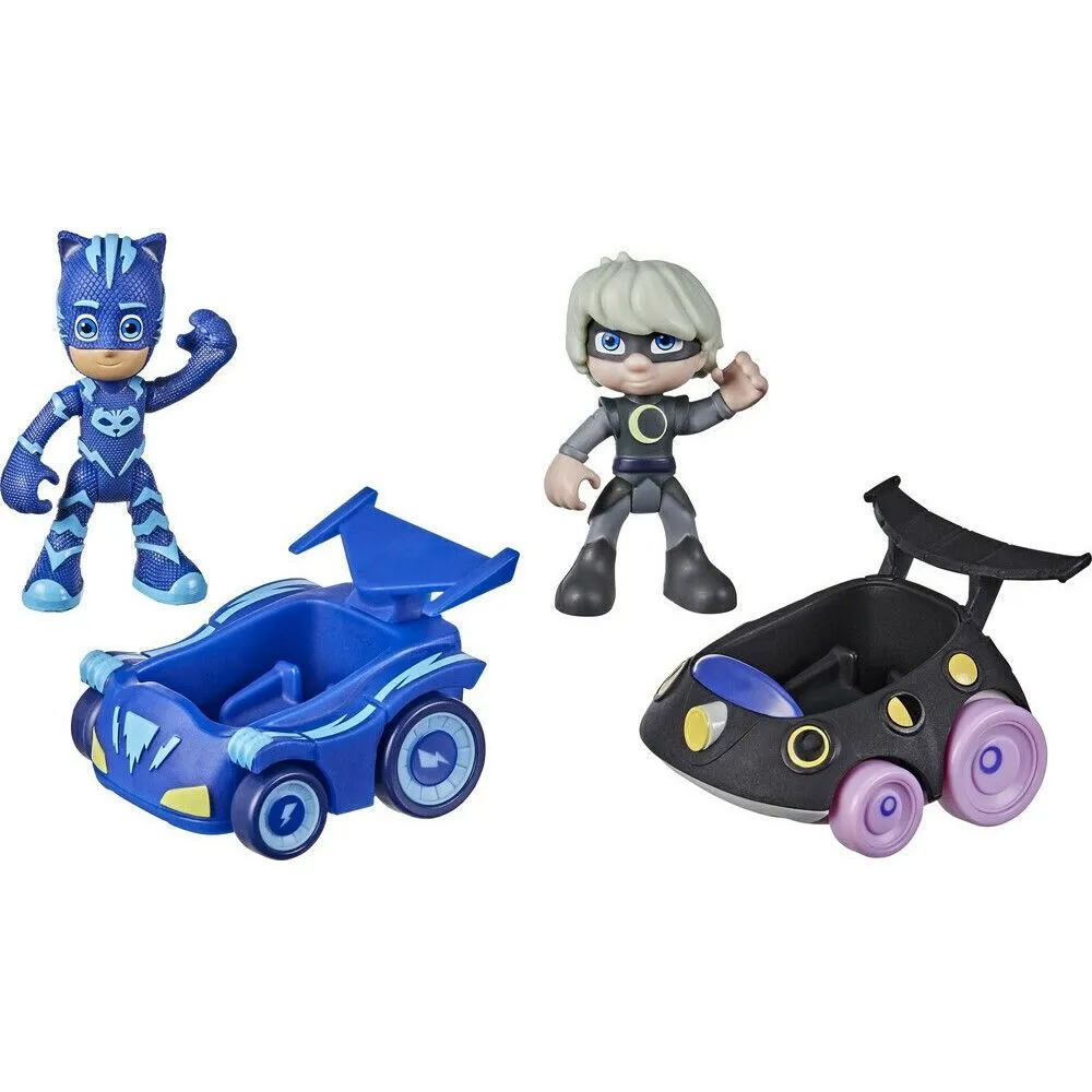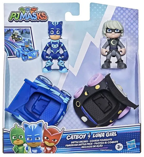 Το σετ συνοδεύεται από 2 μίνι αυτοκίνητα (γατοκίνητο και όχημα της Luna Girl) PJ Masks και 2 αρθρωτές φιγούρες δράσης Catboy και Luna Girl, έτσι ώστε τα παιδιά να μπορέσουν να βάλουν τους καλούς και τους κακούς να αναμετρηθούν σε επικούς αγώνες ταχύτητας. Οι φιγούρες μπορούν να καθίσουν μέσα στα οχήματα, έτσι ώστε τα παιδιά προσχολικής ηλικίας να αναβιώσουν τις αγαπημένες σκηνές τους από την ομώνυμη τηλεοπτική σειρά ή να επινοήσουν τις δικές τους νέες περιπέτειες!