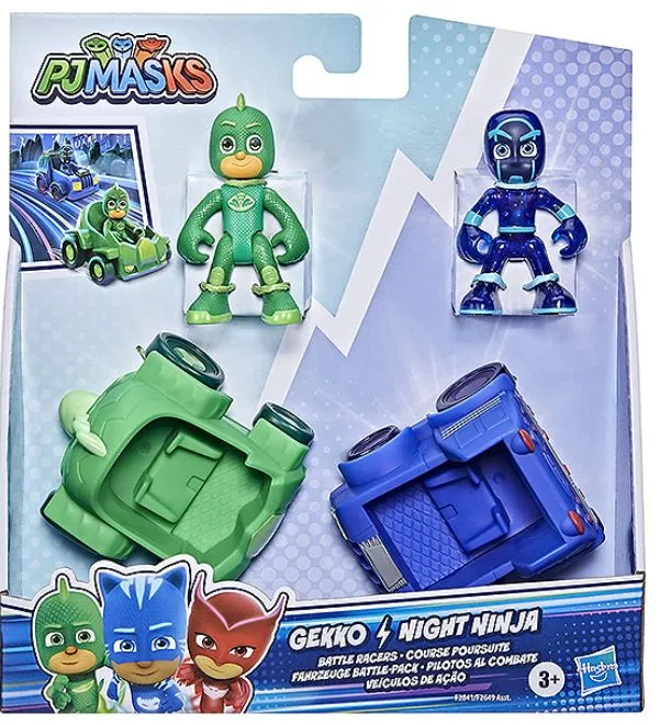 Το σετ συνοδεύεται από 2 μίνι αυτοκίνητα (Gekko-mobile και όχημα του Nigth Ninja) PJ Masks και 2 αρθρωτές φιγούρες δράσης Gekko και Night Ninja, έτσι ώστε τα παιδιά να μπορέσουν να βάλουν τους καλούς και τους κακούς να αναμετρηθούν σε επικούς αγώνες ταχύτητας. Οι φιγούρες μπορούν να καθίσουν μέσα στα οχήματα, έτσι ώστε τα παιδιά προσχολικής ηλικίας να αναβιώσουν τις αγαπημένες σκηνές τους από την ομώνυμη τηλεοπτική σειρά ή να επινοήσουν τις δικές τους νέες περιπέτειες!