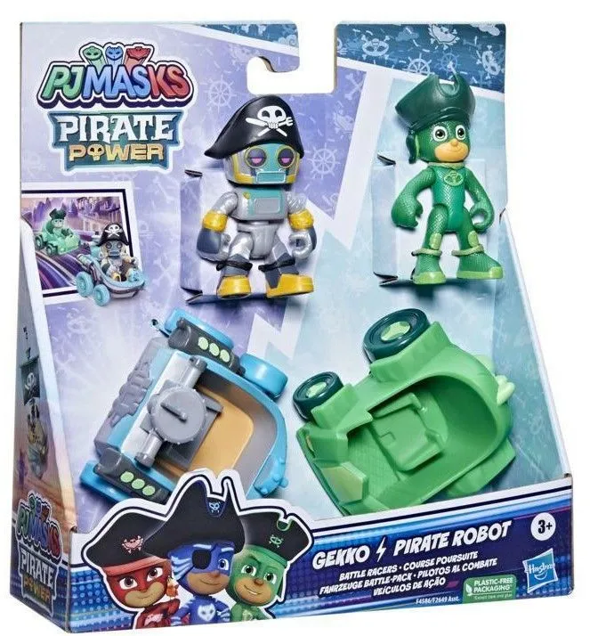 Το σετ συνοδεύεται από 2 μίνι αυτοκίνητα (Gekko-mobile και πειρατικό πλοίο) PJ Masks και 2 αρθρωτές φιγούρες δράσης Gekko και Pirate Robot, έτσι ώστε τα παιδιά να μπορέσουν να βάλουν τους καλούς και τους κακούς να αναμετρηθούν σε επικούς αγώνες ταχύτητας. Οι φιγούρες μπορούν να καθίσουν μέσα στα οχήματα, έτσι ώστε τα παιδιά προσχολικής ηλικίας να αναβιώσουν τις αγαπημένες σκηνές τους από την ομώνυμη τηλεοπτική σειρά ή να επινοήσουν τις δικές τους νέες περιπέτειες!
