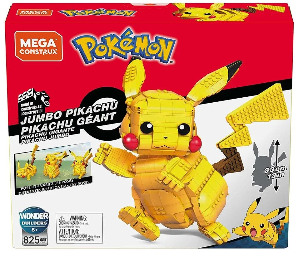 Pokemon Mega Construx Jumbo Pikachu Αυτά τα τουβλάκια της εταιρίας Mega Bloks, χαρίζουν ατελείωτες ώρες παιχνιδιού και αναπτύσσουν την δημιουργικότητα του παιδιού. Είναι κατασκευασμένα από ασφαλές πλαστικό υλικό. Είναι κατάλληλα για ηλικίες από 8 ετών και άνω.