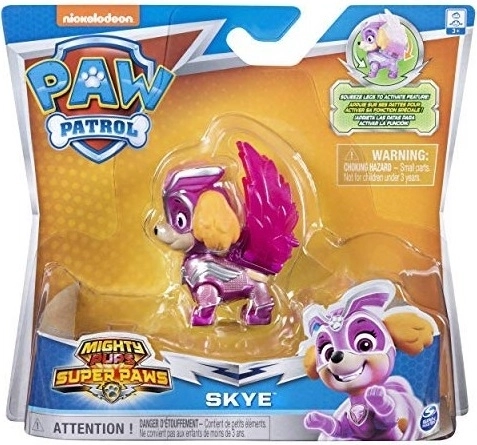 Paw Patrol Mighty Pups Super Paws Κουταβάκια Ήρωες Skye Θεματικά Κουταβάκια με μεταλλικές γυαλιστερές στολές,με ασημί λεπτομέρειες, μάσκα και ένα ημιδιαφανές φορτίο σε λειτουργία.Το φορτίο τους μπαίνει σε λειτουργία, μόλις τα πόδια ζουληχτούν.