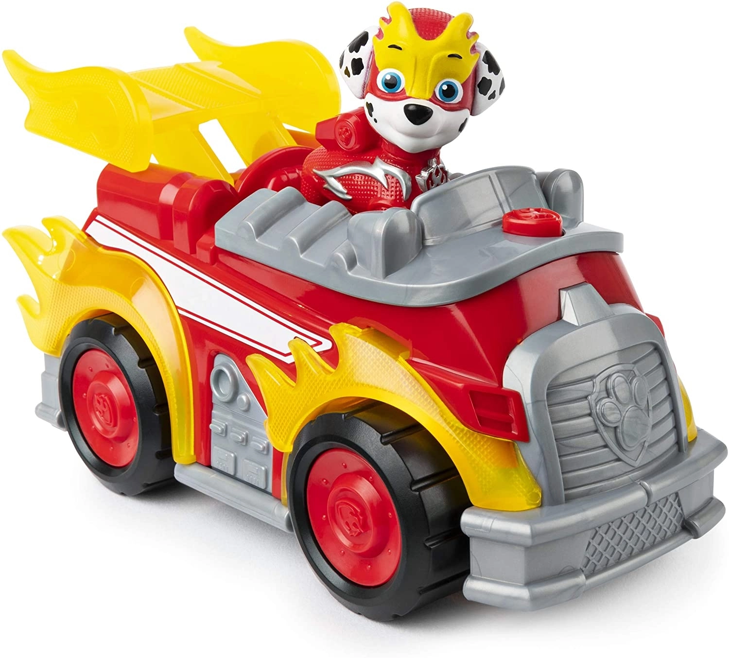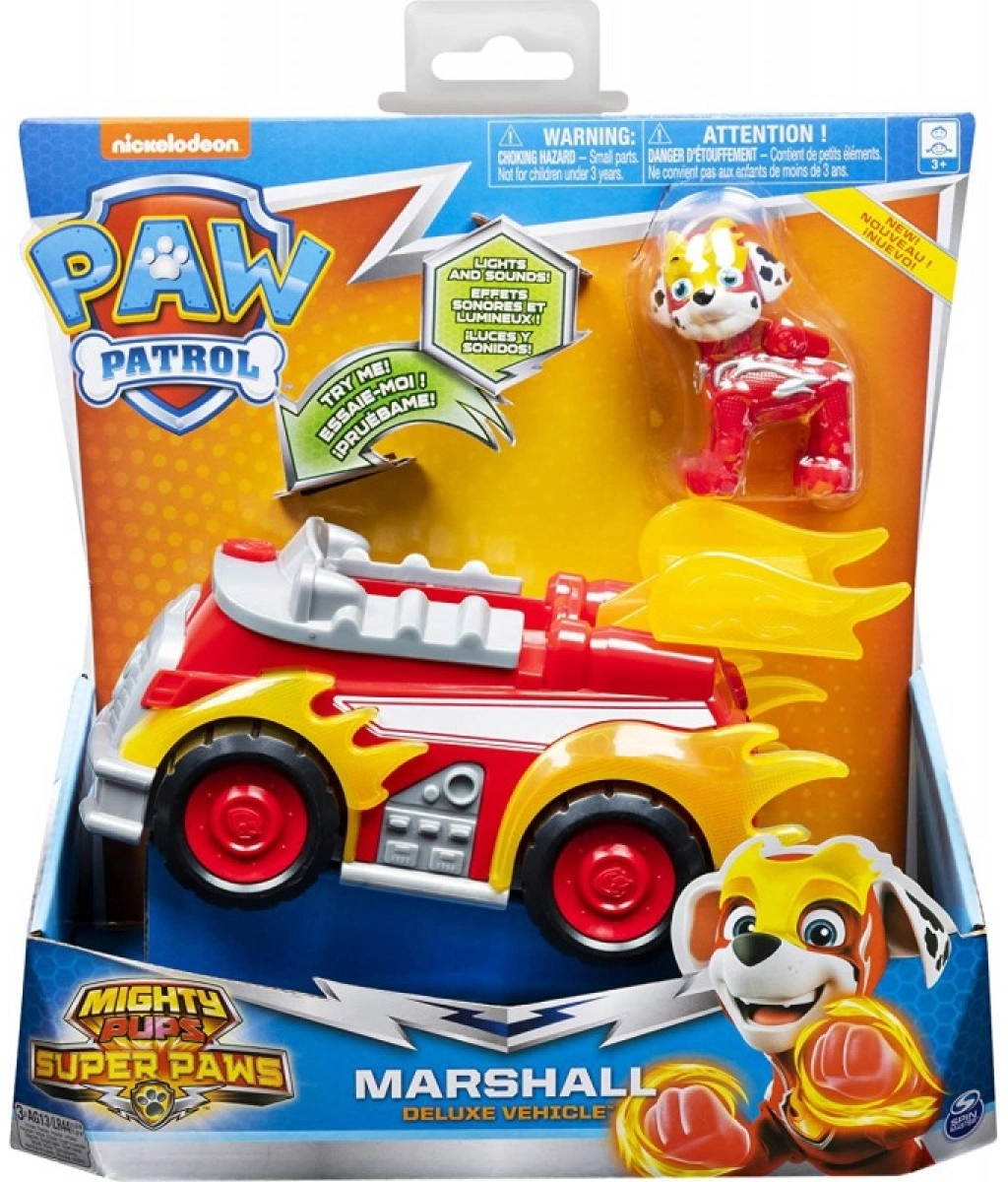 Paw Patrol Mighty Pups Super Paws Οχήματα Περιπέτειας Deluxe Marshall Όχημα Deluxe Super Paws με αποσπώμενη φιγούρα Με φώτα, ήχους και ρόδες που κινούνται Πιέζοντας το κουμπί στο μπροστινό μέρος φωτίζουν τα διαφανή σημεία του οχήματος και ακούγονται μοναδικά ηχητικά εφέ Κατάλληλο για παιδιά ηλικίας 3+ ετών