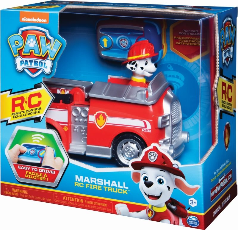 Με ρεαλιστικά χαρακτηριστικά, μια σκάλα που ανεβοκατεβαίνει και τον Μάρσαλ να κάθεται στη θέση του οδηγού, το τηλεκετευθυνόμενο αυτό όχημα είναι έτοιμο για αποστολές διάσωσης. Το τηλεκατευθυνόμενο πυροσβεστικό όχημα του Μάρσαλ περιλαμβάνει ένα εύχρηστο τηλεχειριστήριο 2 κατευθύνσεων, που μοιάζει με το Ηλεκτρονικό Pup Pad! Με 2 κουμπιά, το παιδί σας μπορεί εύκολα να οδηγήσει τον Μάρσαλ μπροστά ή να πατήσει το κουμπί για να στρίψει και να επιστρέψει πίσω. Το Pup Pad χειριστήριο έχει συχνότητα 2,4GHz, ώστε να μπορεί το παιδί να το ελέγχει από απόσταση έως και 76 μέτρα. Ο Μάρσαλ και το Τηλεκατευθυνόμενο Πυροσβεστικό του θα σας βοηθήσουν να σώσετε την κατάσταση!