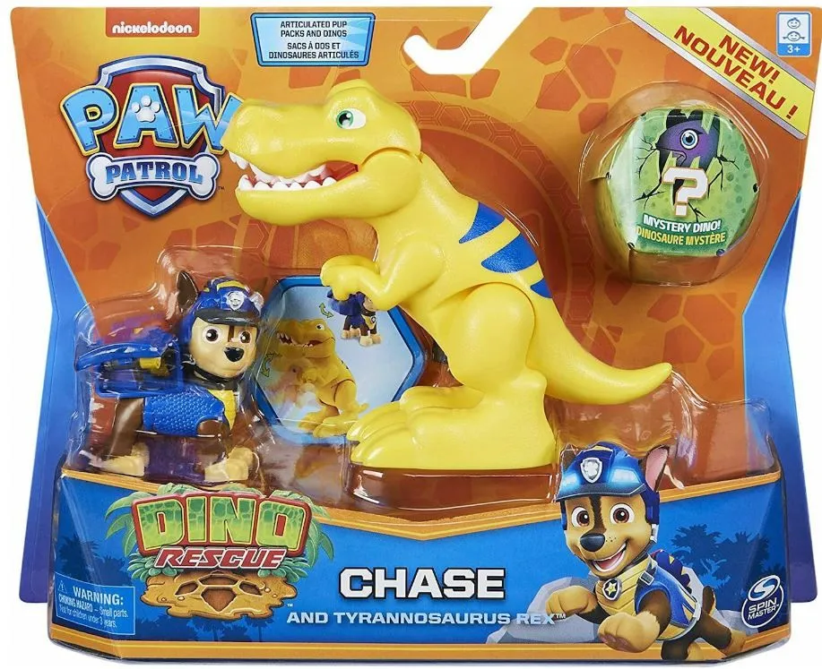 Σετ παιχνιδιού Chase and Tyrannosaurus Rex από την σειρά Paw Patrol της εταιρίας Spin Master. Διαθέτει διάφορα αξεσουάρ που συνθέτουν ένα ολοκληρωμένο παιχνίδι και θα χαρίσουν στο παιδί ατέλειωτες ώρες απασχόλησης. Το παιχνίδι με μινιατούρες έχει αποδειχθεί ότι μαθαίνει το παιδί να αναπτύσσει τη δημιουργικότητά του, τη φαντασία του καθώς και την ενσυναίσθησή του. Επίσης, μπορεί να δημιουργήσει ιστορίες και διαλόγους που το βοηθούν στην ομιλία όταν είναι στα πρώτα στάδια λόγου. Κατανέμει ρόλους και αρμοδιότητες στον κάθε χαρακτήρα και ονομάζει τα αντικείμενα και τις ενέργειες που κάνουν.
