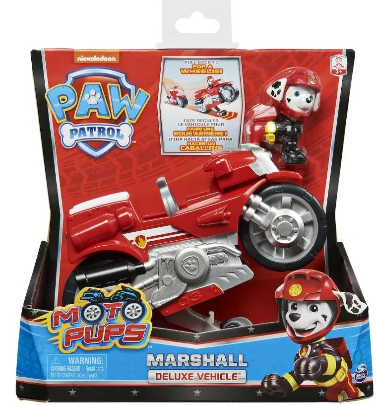 Spin Master Paw Patrol:Moto Plus- Marshall Deluxe Vehile Πάρε μέρος σε ιλιγγιώδεις αποστολές διάσωσης με τα κουτάβια PAW Patrol και τα οχήματα διάσωσης Μοτο-Κουτάβια! Κάθε μηχανή διαθέτει αυθεντικά γραφικά και πιστές λεπτομέρειες, μεγάλους τροχούς και λειτουργία σούζας! Όλα τα Μοτο-Κουτάβια είναι εξοπλισμένα με ειδικό μπουφάν και κράνος, έτοιμα για δράση!…