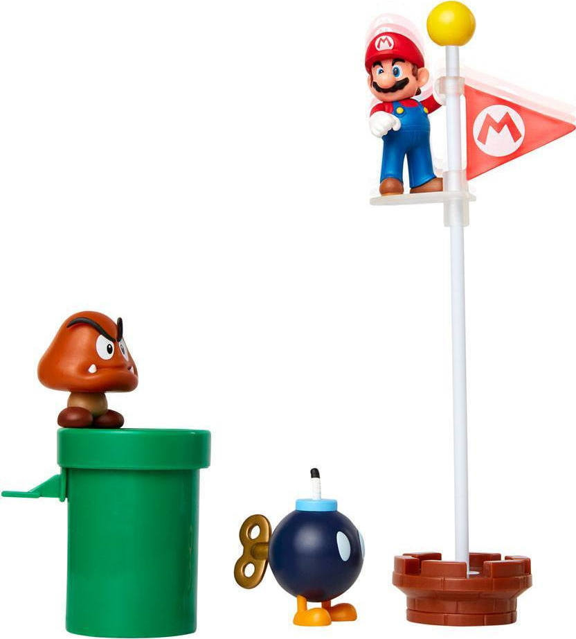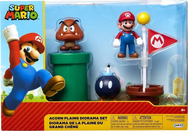 Το Acorn Plains Diorama Set σας επιτρέπει να αναδημιουργήσετε τον ενθουσιασμό από τα βιντεοπαιχνίδια Super Mario ™. Τα παιδιά μπορούν να επεκτείνουν το Mario World τους με φιγούρες και αποκλειστικά αξεσουάρ με μηχανισμούς. Ο Mario μπορεί να κινηθεί πάνω-κάτω στο σωλήνα ή στο κοντάρι σημαίας, όπως και στο παιχνίδι. Τα αξεσουάρ διαθέτουν αρθρώσεις και μπορούν να χρησιμοποιηθούν και με τα playsets. Περιλαμβάνονται επίσης οι φιγούρες Mario, Goomba και Bob-Omb 2.5”. Ξεκινήστε να χτίζετε τον κόσμο του Super Mario ™ με αυτό το καταπληκτικό σύνολο φιγούρων και αξεσουάρ!